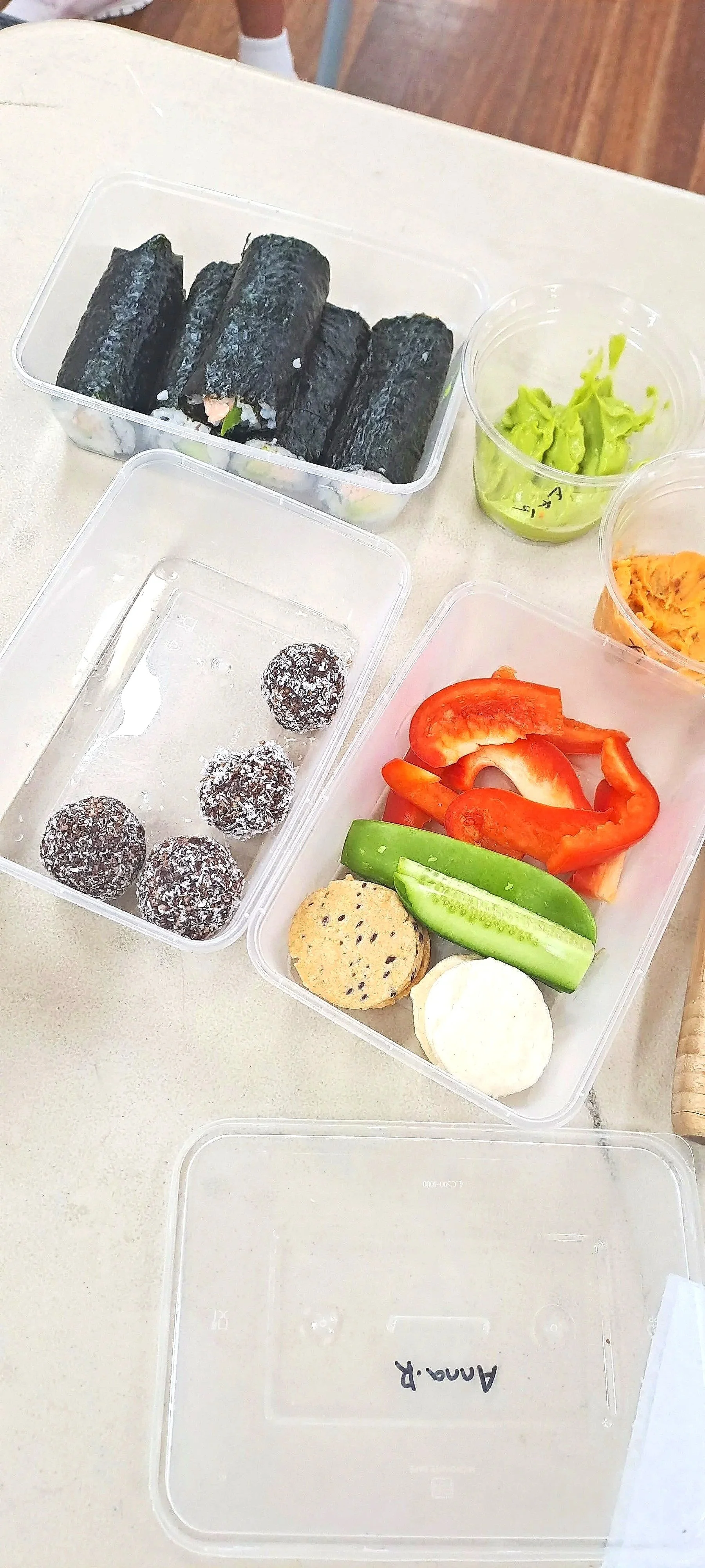 Smoothies, sushi, rice paper rolls, protein balls, dips and snack plates